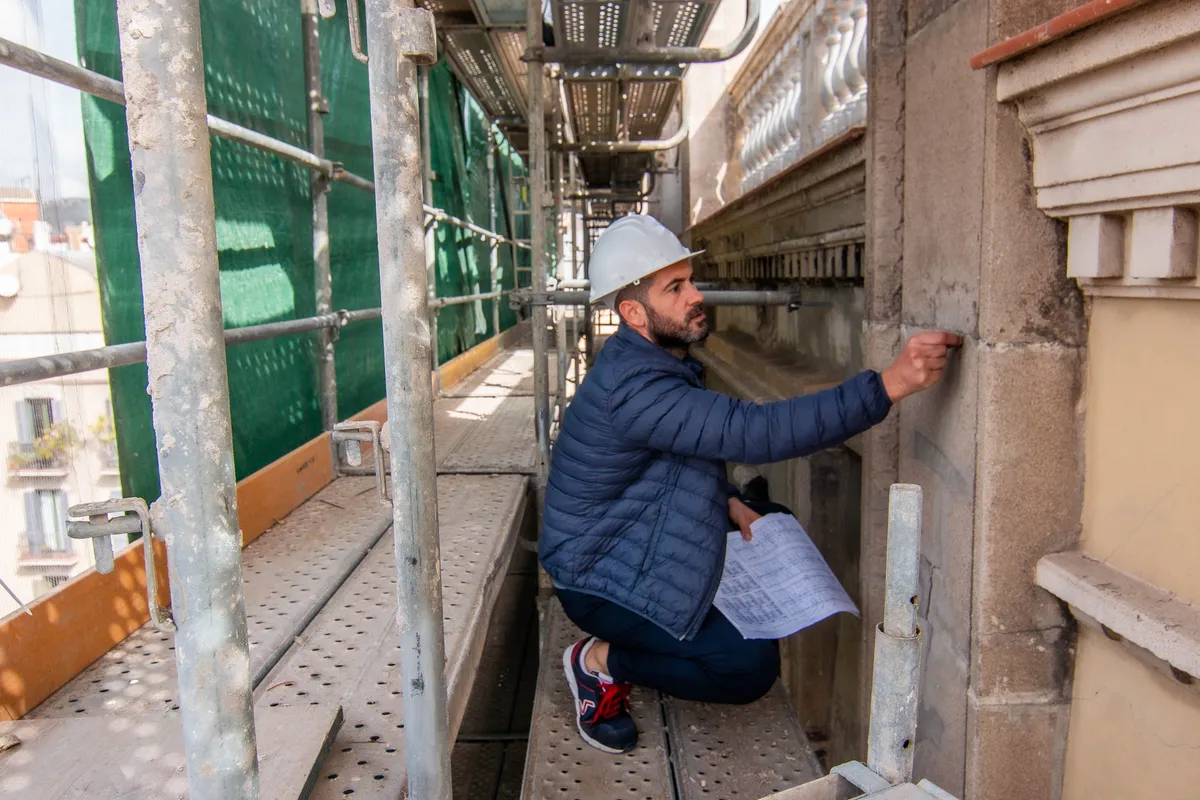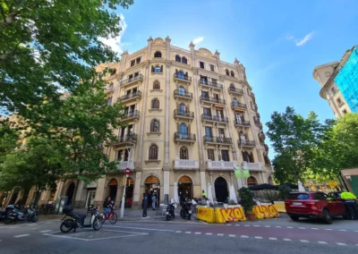 Desde Somhiat, se redactó el proyecto técnico de rehabilitación de fachada y balcones, tramitando la licencia mediante comunicado diferido con afectación patrimonial, conforme a la normativa del Ayuntamiento de Barcelona.