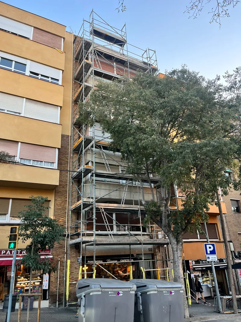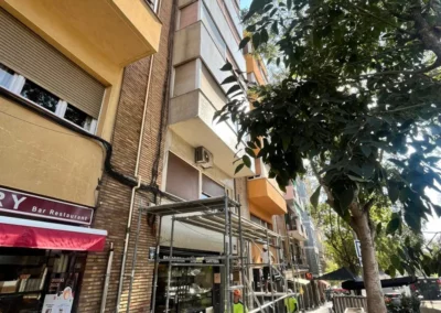 Desde Somhiat, se redactó un proyecto técnico de rehabilitación de fachada y balcones. Se gestionaron los permisos correspondientes mediante procedimiento de comunicado diferido con afectación patrimonial, cumpliendo con los requisitos del Ayuntamiento de Barcelona.